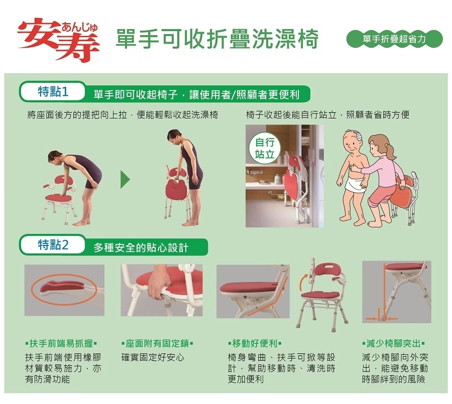 【日本安壽】單手可收折疊洗澡椅 _IS_ 一般椅面