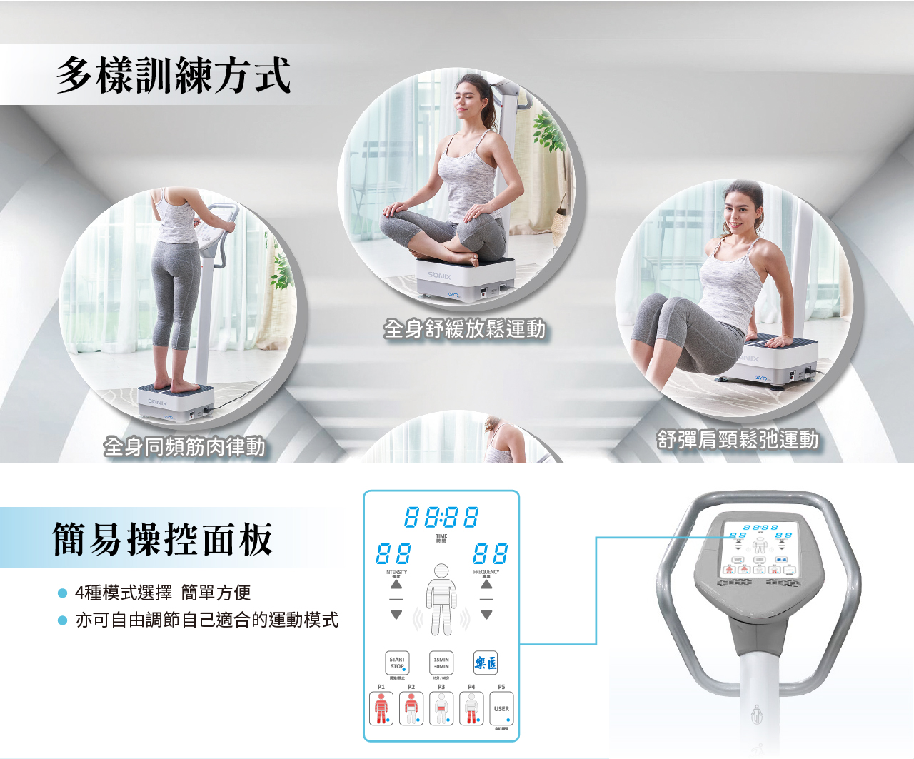 操作顯示:直覺式圖形化操作,科技藍光LED顯示,運動部位操作清晰