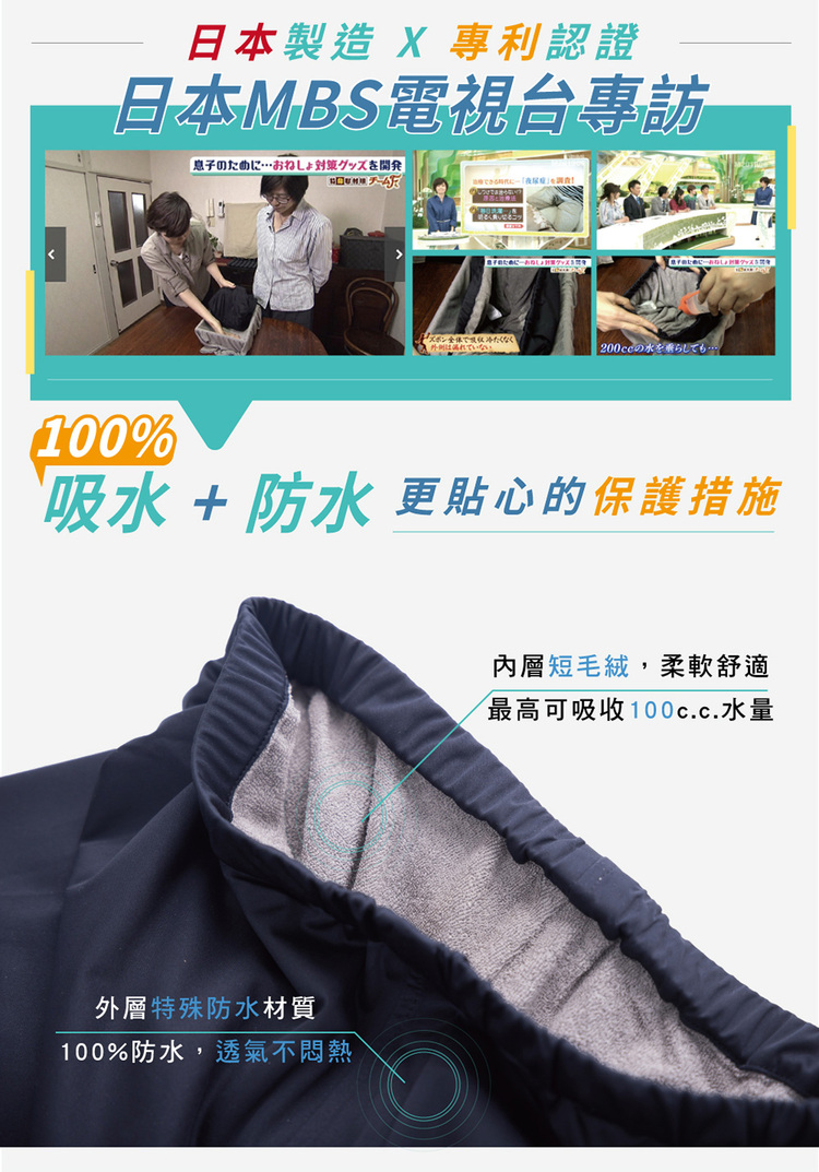 100%吸水+防水,更貼心的保護措施