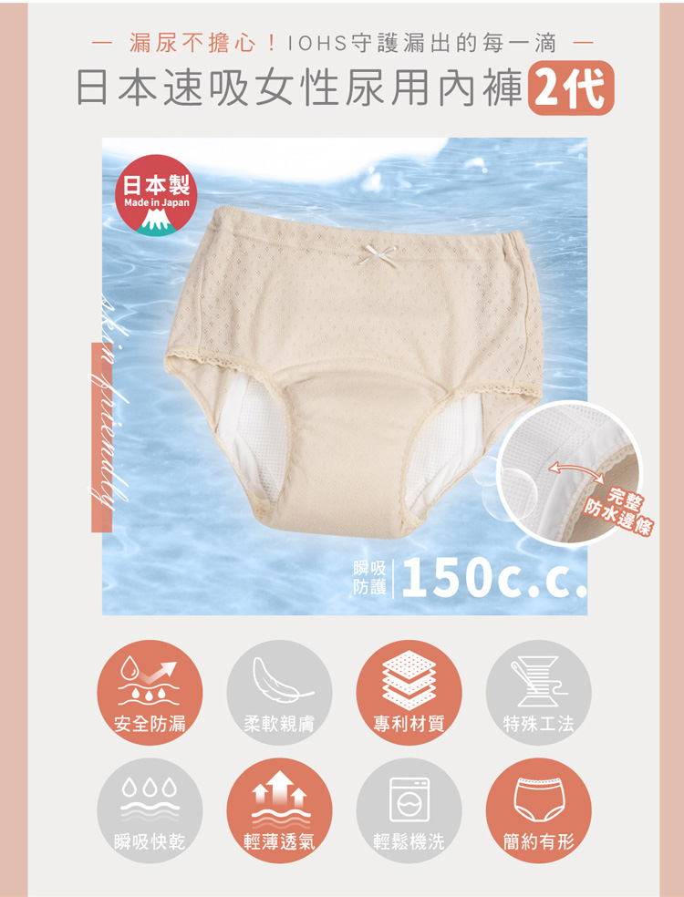 【IOHS 十分幸福】150cc 日本女性速吸尿用內褲