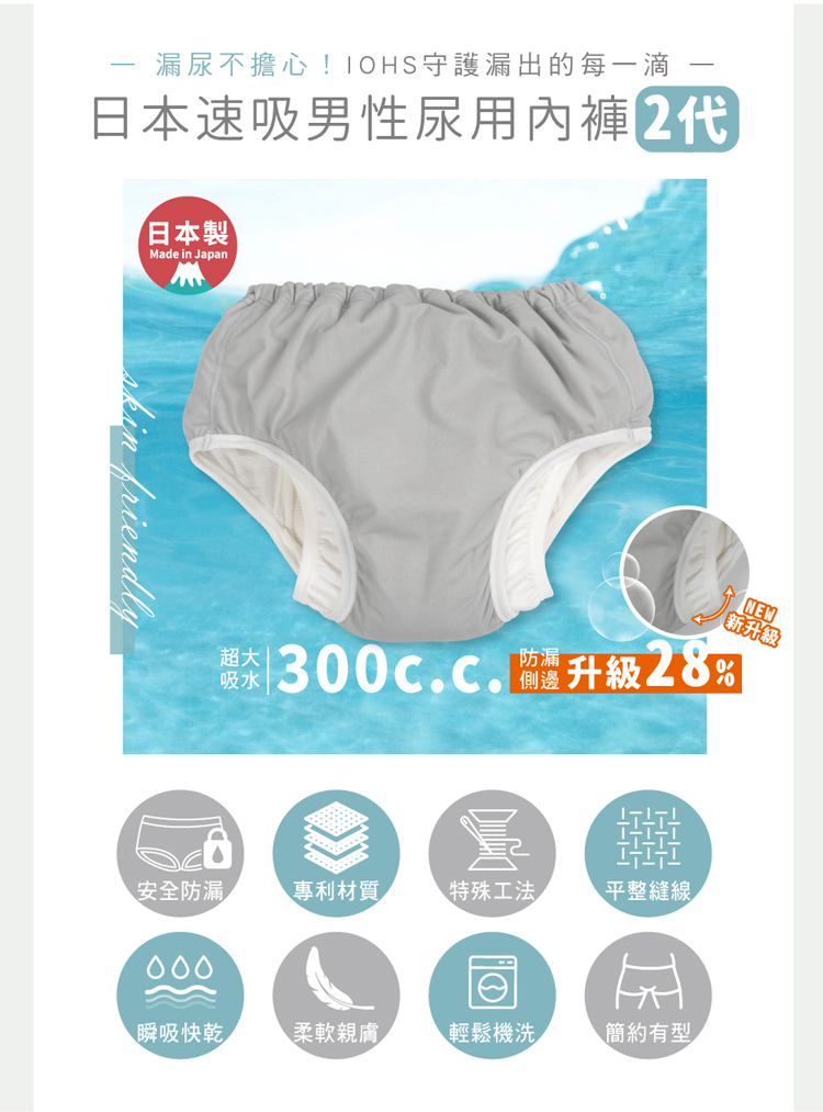 【IOHS 十分幸福】300cc 日本男性速吸尿用內褲