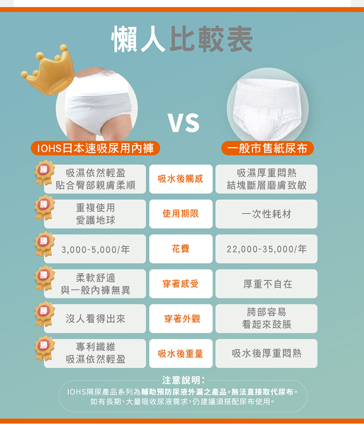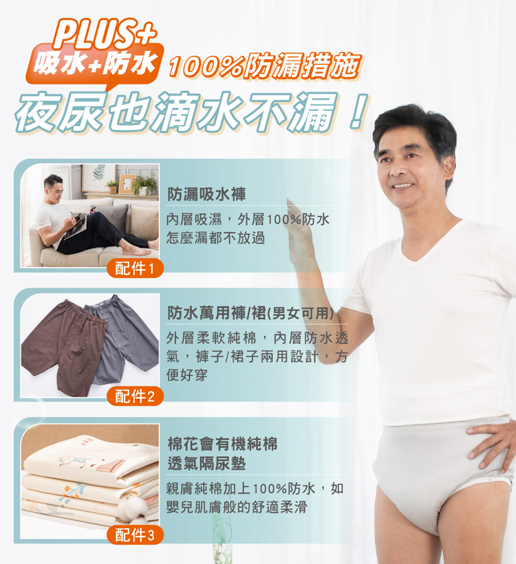可吸收300cc水分,高度漏尿困擾、攝護腺疾病與長期照顧需求適用