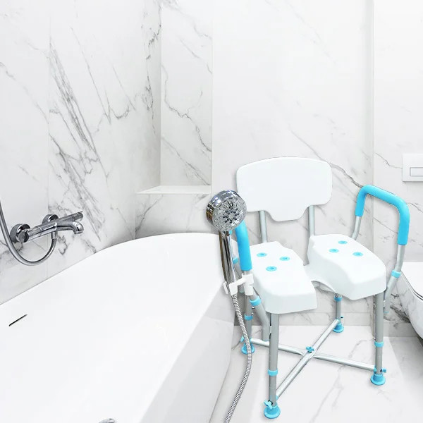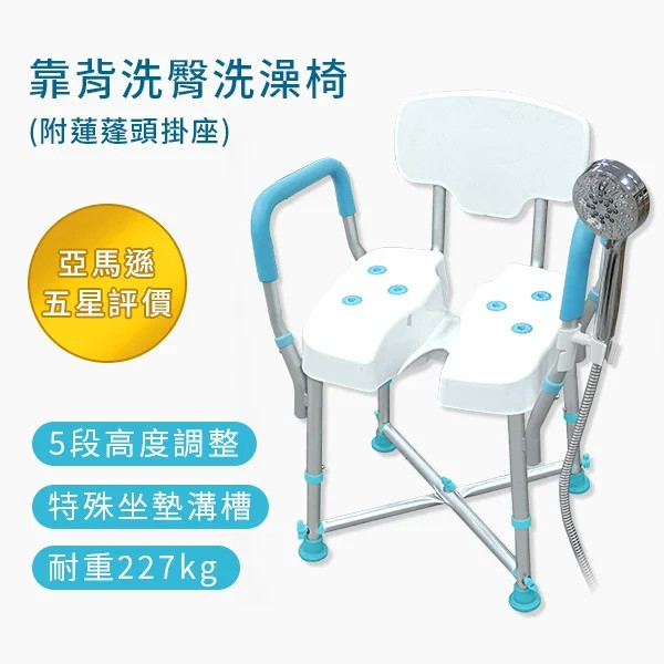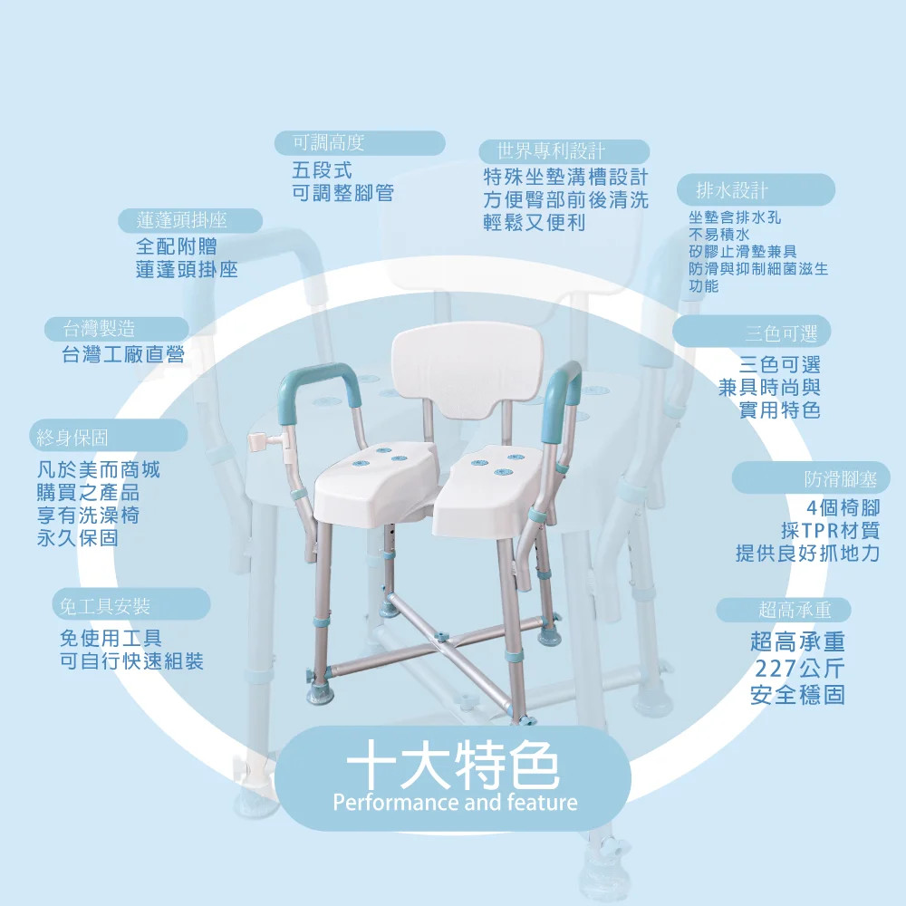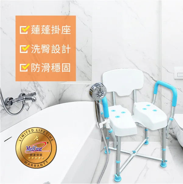 【MedGear 美而】靠背洗臀洗澡椅(含發泡扶手)附蓮蓬頭掛座