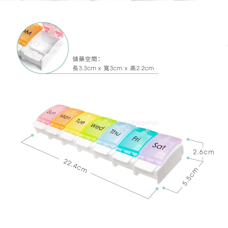 - 每格儲藥空間:3.3 x 3 x 2.2 cm