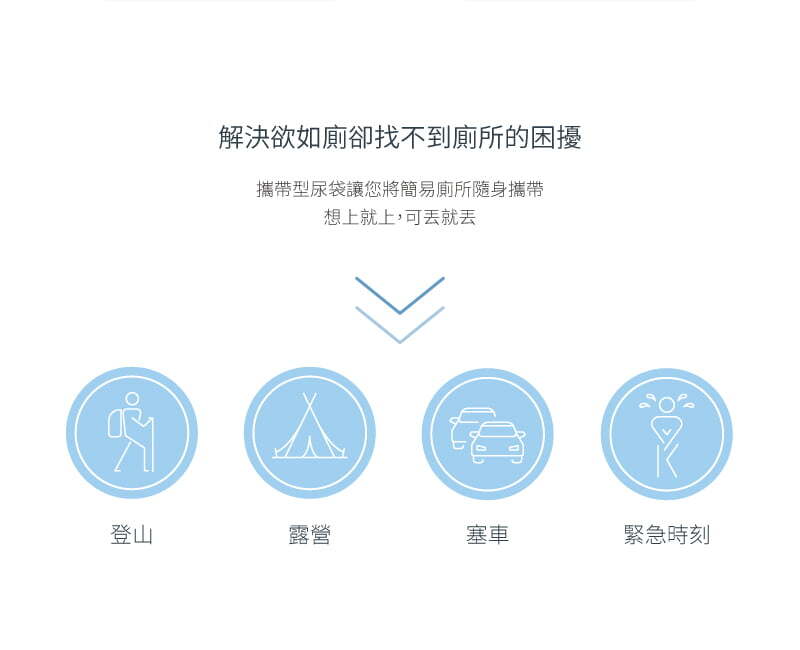 攜帶型尿袋讓您將簡易廁所隨身攜帶,想上就上,可丟就丟。
