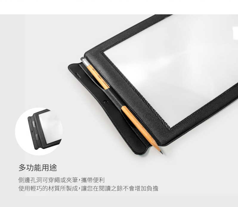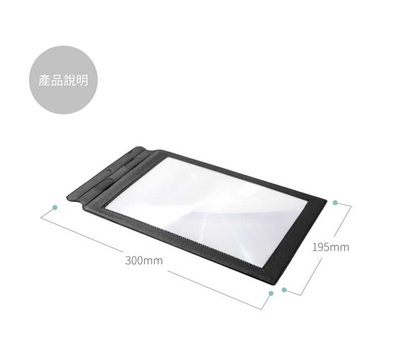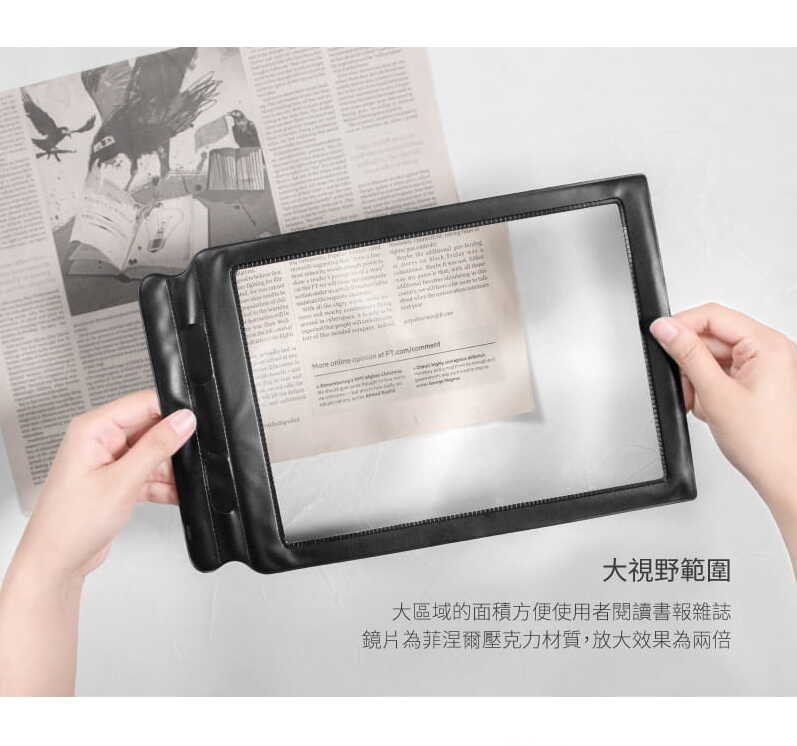 本款放大鏡有大區域的面積方便使用者閱讀書報雜誌。使用輕巧的材質所製成,讓您在閱讀之餘不會增加負擔。可放大2倍。