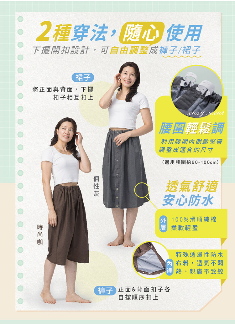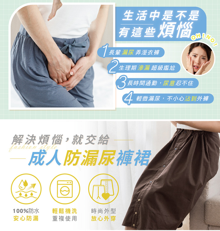 【IOHS 十分幸福】成人防漏尿褲裙 男女適用