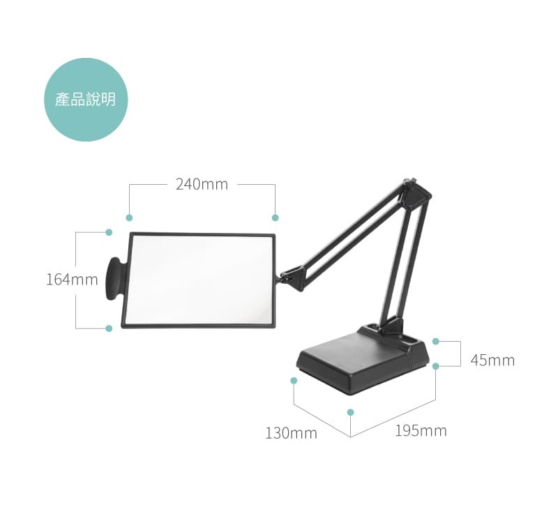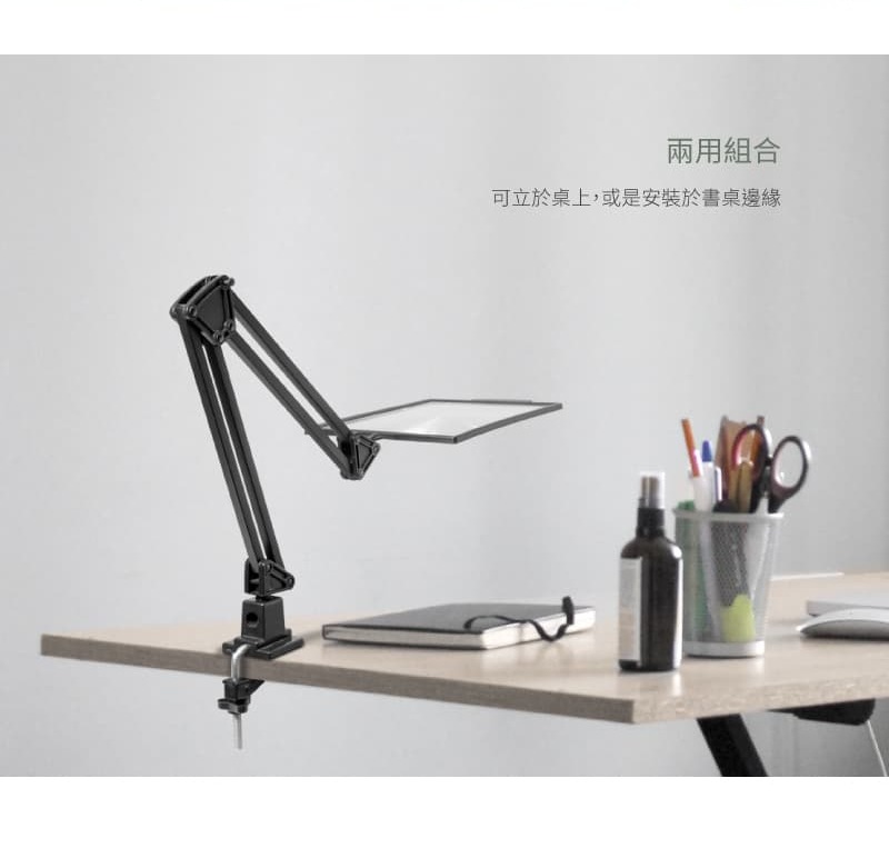 桌上型放大鏡 可放置於桌上或安裝於桌子邊緣 角度高度可調