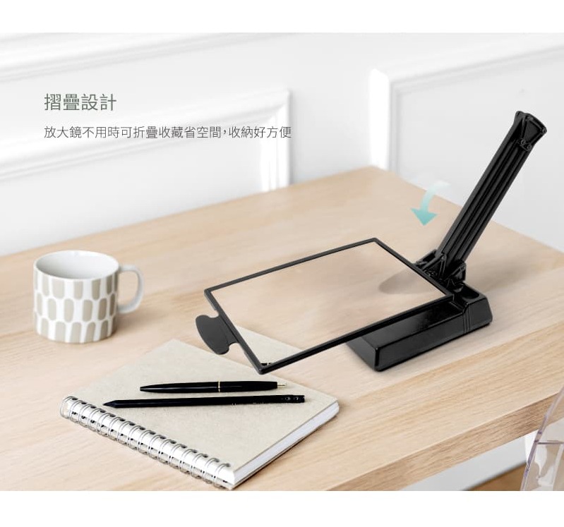 摺疊設計:放大鏡不用時可折疊收藏省空間,收納好方便