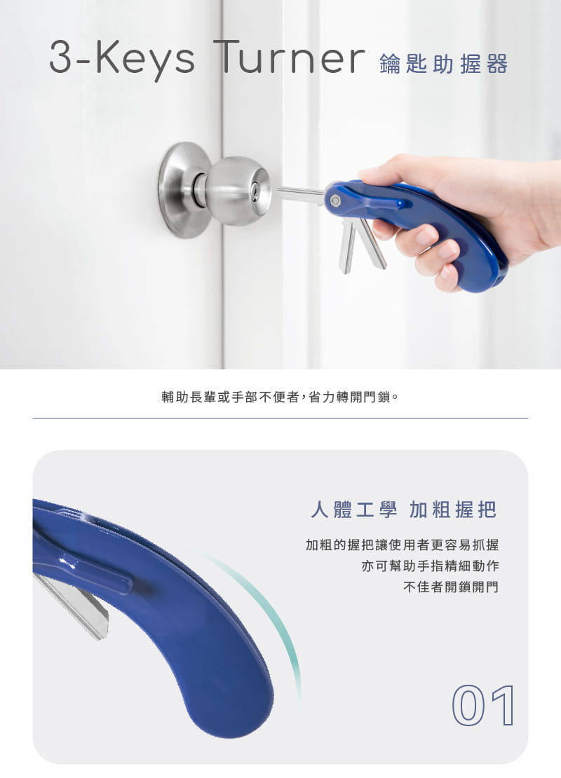 只需將鑰匙放入助握器,輕鬆開鎖不費力