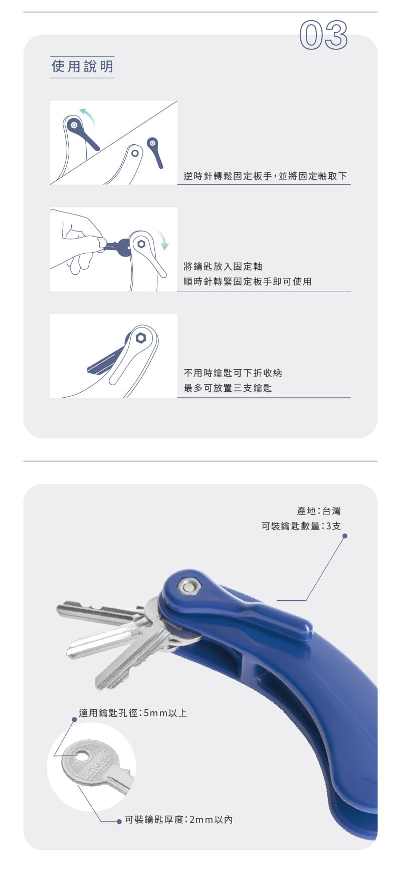 不用時鑰匙可下折收納,最多可放置三支鑰匙