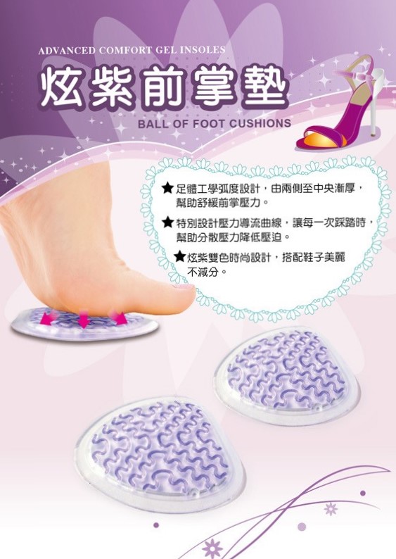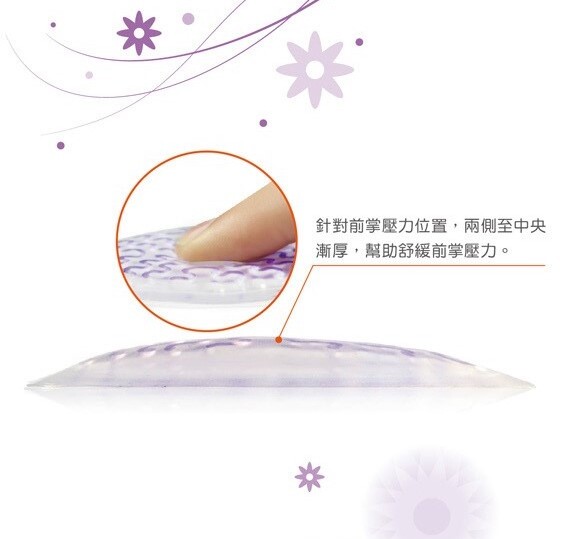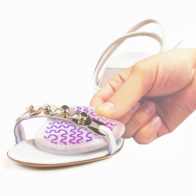 先將鞋面清潔乾淨,撕開透明雛形模,黏貼在前掌適當位置即可